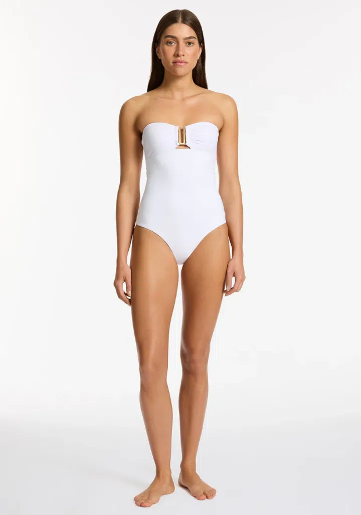 This sleek white bandeau one-piece is perfect for the bride-to-be on her bachelorette getaway. With a chic, flattering fit and a touch of bridal elegance, it’ll have you looking fab while you celebrate. From poolside lounging to sunset cocktails, this is the swimsuit every bride deserves.