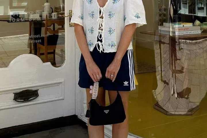 A blouse and a pair of classic Adidas shorts? Believe it or not, the three-stripe Adidas shorts are trending all over Tiktok right now. The fashion set is styling them with unconventional pairings like a shirt with heels, or a pretty blouse with loafers or Mary Janes. We stan a combo that’s totally unexpected but effortless at the same time.