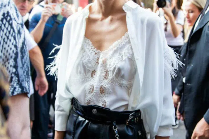 The queen of uptown chic, Olivia Palermo, never misses a beat. We stan her fashion week look, which is a perfect mix of feminine and femme fatale. While a blouse can sometimes look too girlie, Olivia gets it right by pairing it with a leather skirt featuring punk-inspired chain embellishments.