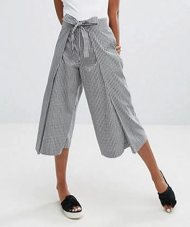 Monki tie waist gingham print trousers, $64.65 from Asos