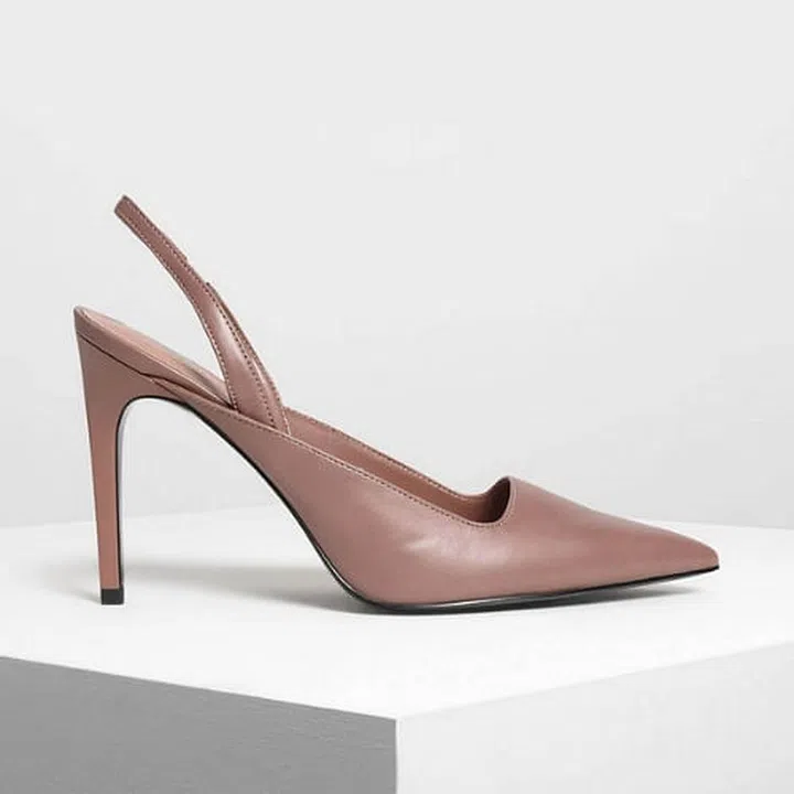This pair of dusty pink slingback pumps has just the right dose of femininity without being too girlish. Dress it down on casual Fridays with a denim shirt and skirt coordinate.