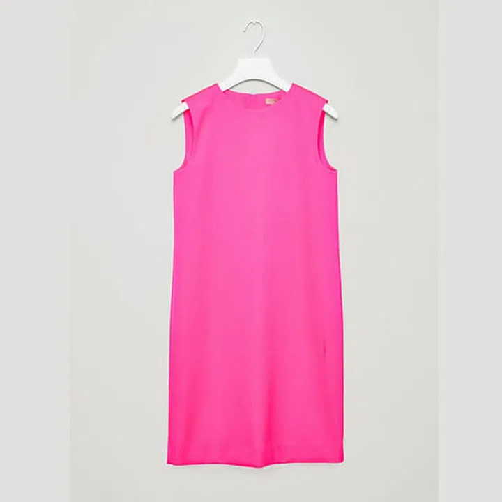 Work wear doesn’t have to be in monochromatic shades. Go for a piece that is bright and bold like this neon pink dress, but tone it down by throwing a cardigan over it which you can remove after work. Leave dresses with textures and prints at home.