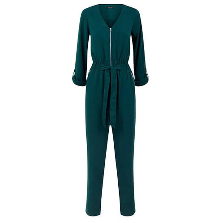 An emerald green jumpsuit screams ’70s Halston chic without looking too casual during the day.