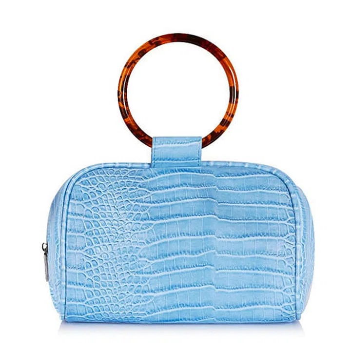 A statement bag like this cute baby blue piece that sports a tortoiseshell handle will invigorate your officewear instantly. Remember to leave your work files in the office.