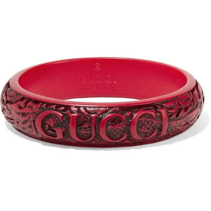 You can make a statement with a simple yet bold bracelet. Just take a look at this Gucci bangle that is in a bold red shade and sports intricate engraving on its surface. Contrast this quirky piece with a pant-suit and a pair of leather pumps.