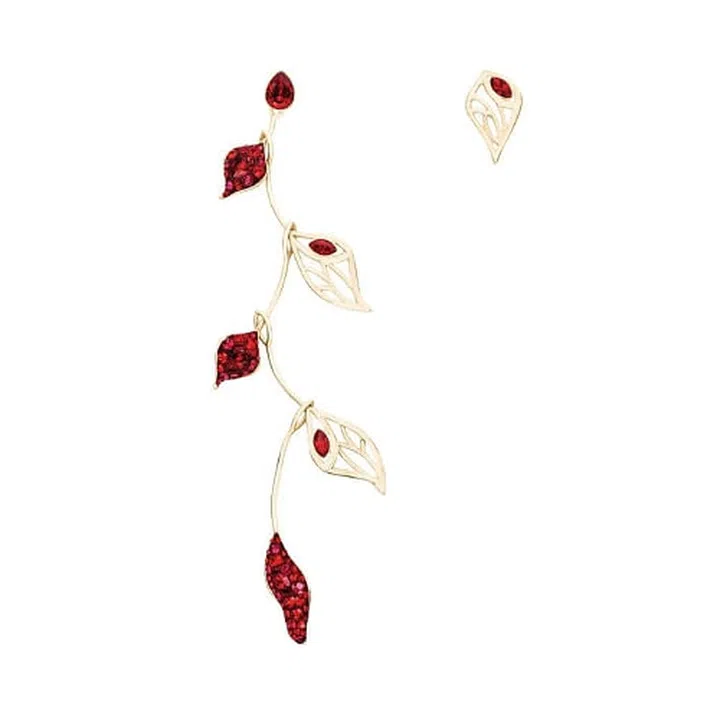 A pair of statement earrings is an essential in your jewellery box. This mismatched set that features stunning crimson crystals is sophisticated and eye-catching.