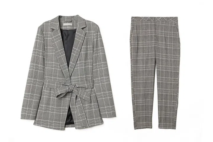 A grey checkered suit is definitely a must-have. Wear this one with a white silk shirt and a pair of black leather stilettos to look super smooth.