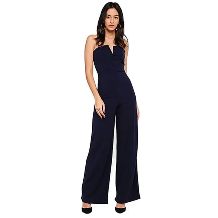 You can always make a bandeau jumpsuit work appropriate with this one simple rule: Don a blazer over it to sharpen the whole look.