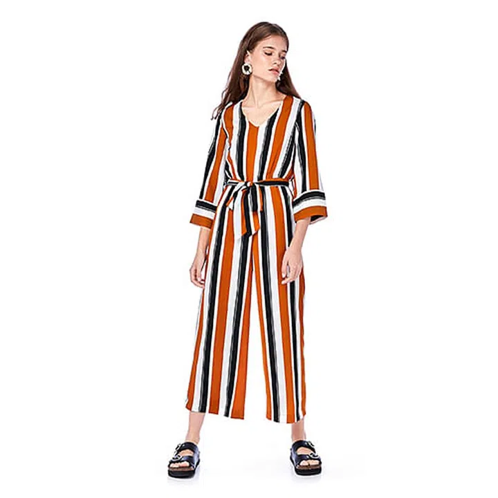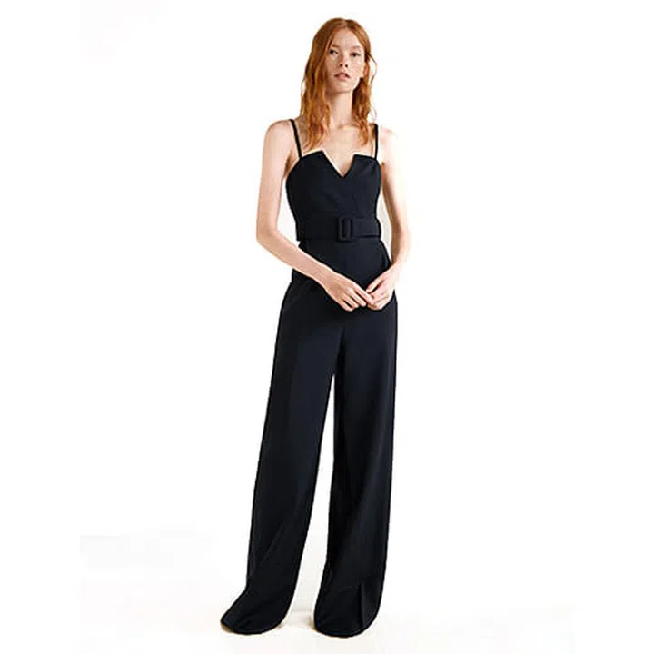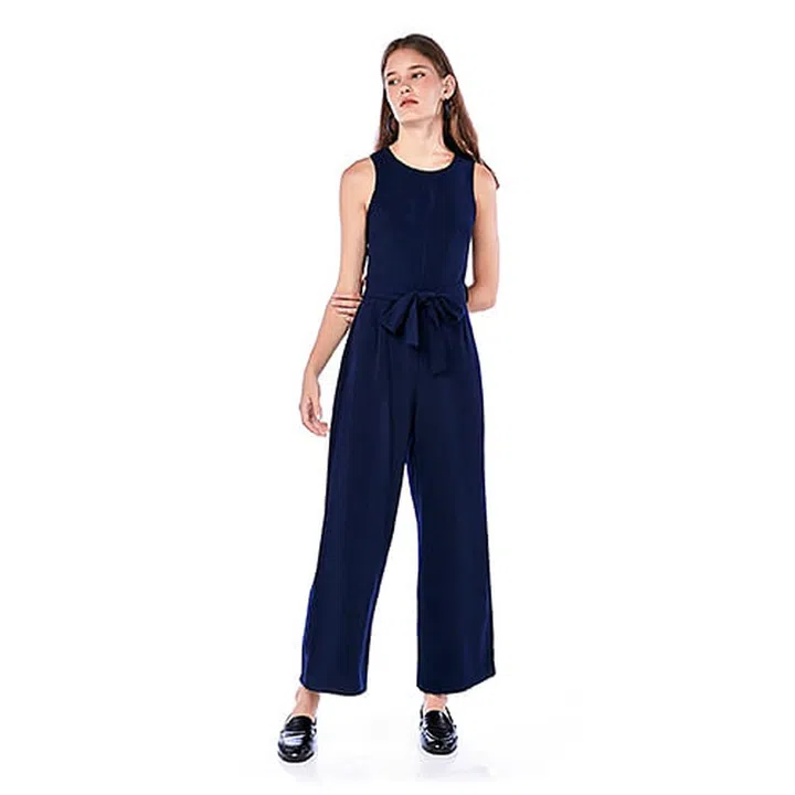 Instead of a typical black piece, go for navy blue, which is professional yet unfailingly chic. Pair this jumpsuit with black leather brogues on Mondays, or dress it up with a pair of floral embellished strappy sandals on casual Fridays.