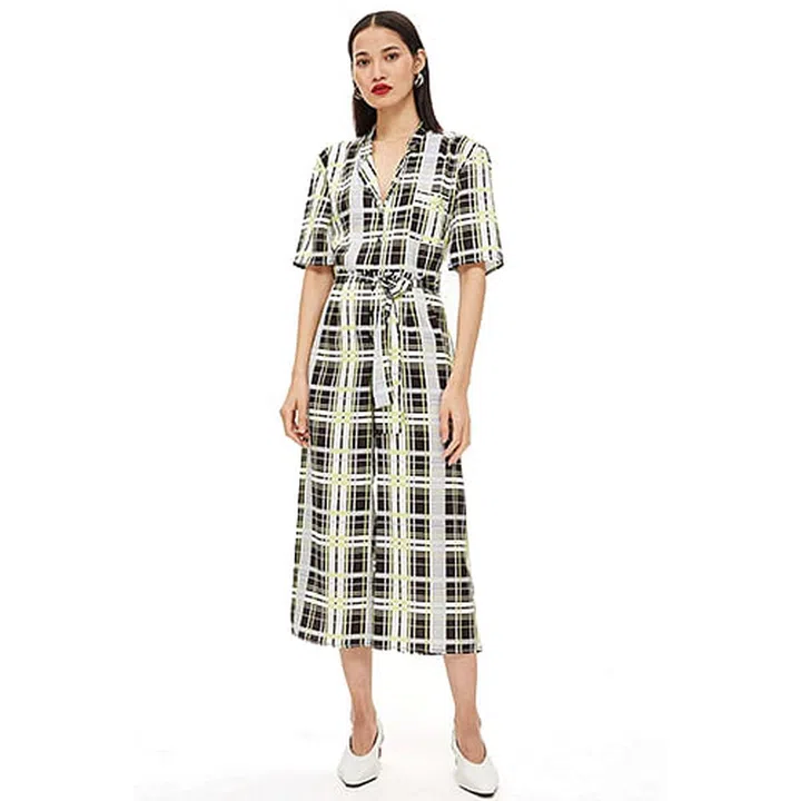 Tone down this eye-catching checkered ensemble with simple accessories to not look too OTT. A simple pair of nude mid-heels and a minimalist gold bangle is sufficient.