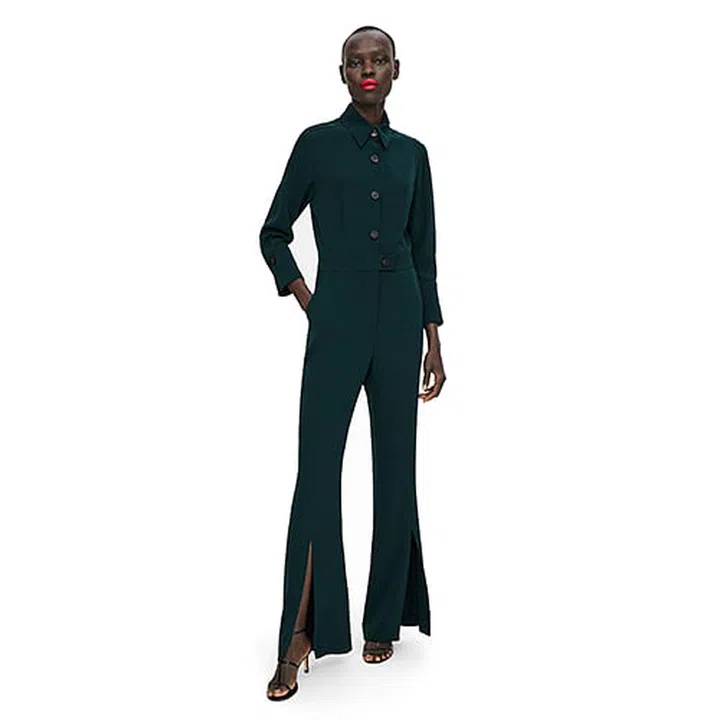 Jumpsuits don’t have to be boring in order for it to be work appropriate. This piece sports an interesting front slit, which are great if you’d want to flaunt the strappy details of a pair of laced-up heels and show a little leg.