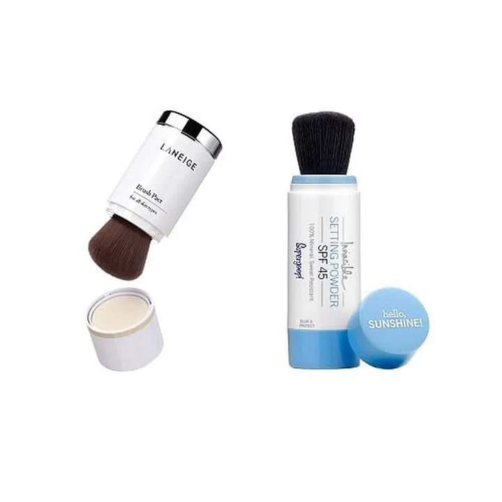 Supergoop Invincible Setting Powder SPF 45, $48; Laneige Brush Pact, $42.