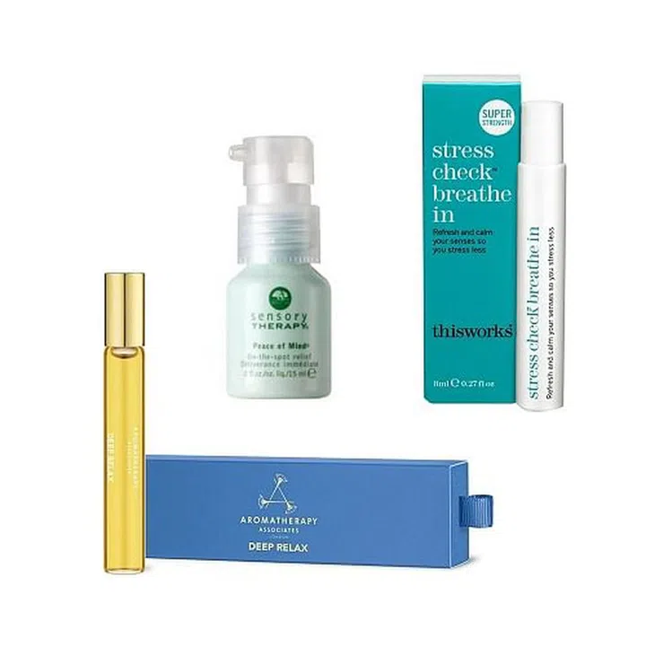 Origins Peace Of Mind On-The-Spot Relief, $30 for 15ml; This Works Stress Check Breathe In, $25 for 8ml; Aromatherapy Associates Deep Relax Roller Ball, $40