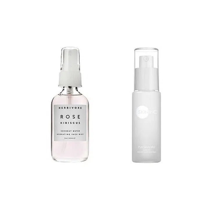 Skin Inc Pure Serum Mist, $30 for 30ml; Herbivore Botanicals Rose Hibiscus Hydrating Face Mist, $25.
