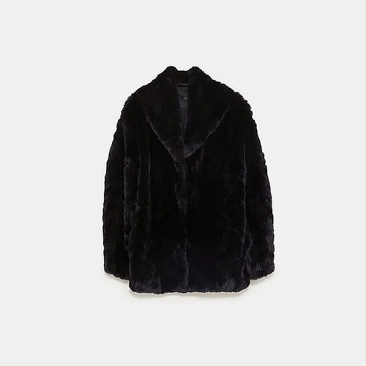 Sometimes all we need is a pop of colour to brighten up the mood. Do this with a vermilion red faux fur coat. This chic piece from Zara will stand out when you wear it with an all black outfit.