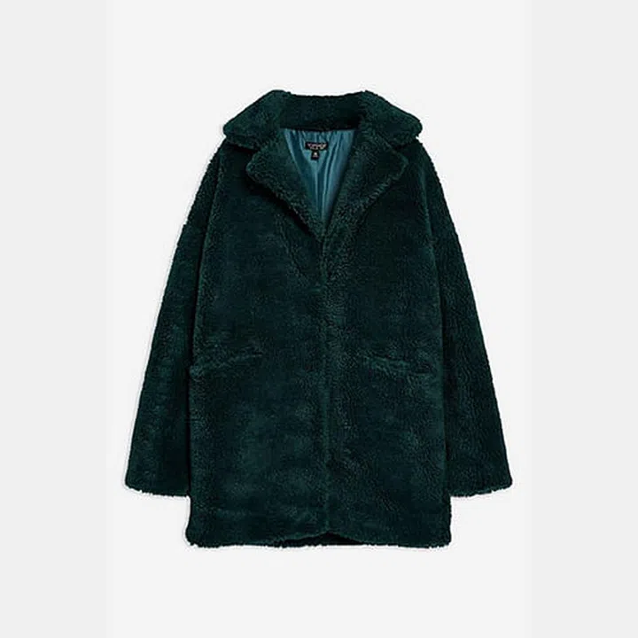 Look smart and sleek with a long line fleece coat that sports structured lapel details. You’d be both warm and stylish in the cold when you pair it with a wool midi skirt and a pair of thigh high boots.