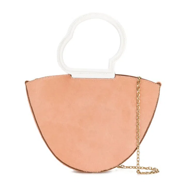 This rendition of the Lilou is texturised with pastel pink pony fur. Featuring a removable gold chain strap and the abstract-shaped handle in a contrasting glossy white, this sweet-looking bag is the current object of our desire.