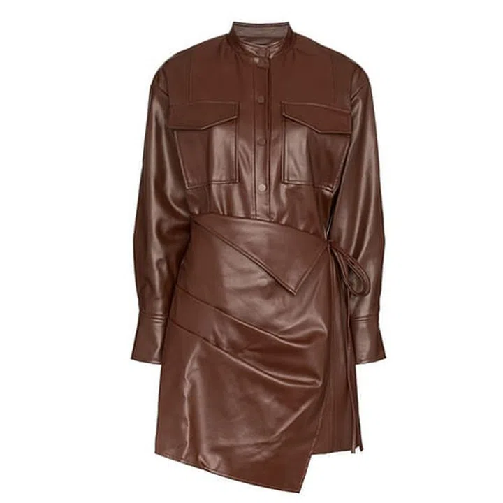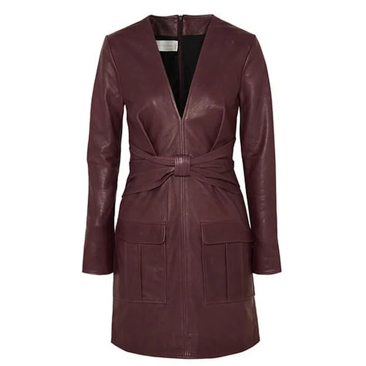 Made entirely from lambskin, this number will look great next to a crossbody saddle bag and cinched at the waist with a wide belt.