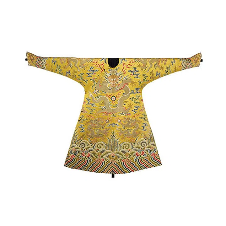 "I love stories and in Qing dress, every detail has to be meaningful. In codified dressing like this robe, one can tell the status of the wearer from the decoration. The emperor is represented by the bright yellow colour and nine dragons, rising above and controlling the universe, indicated by the swirling clouds, and waves and mountains at the hem."