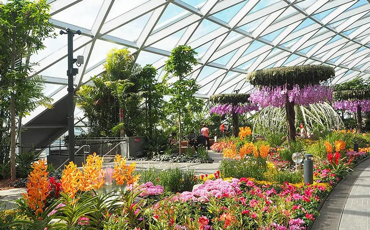 Stroll along the pretty garden trails at this indoor foliage wonderland.