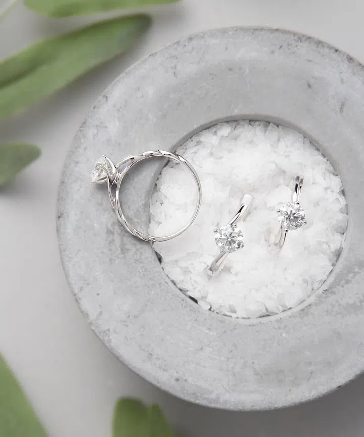Allove 18K white gold rings with diamond solitaires, SK JEWELLERY.
