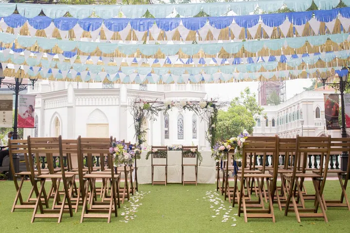 CHIJMES has been a popular wedding destination, and for good reason. At the heart of City Hall, with lush gardens and the majestic hall as part of the backdrop, CHIJMES The Lawn promises to provide a fantastic ambiance for your special intimate night.