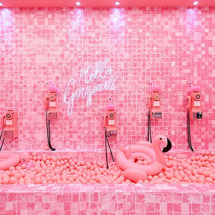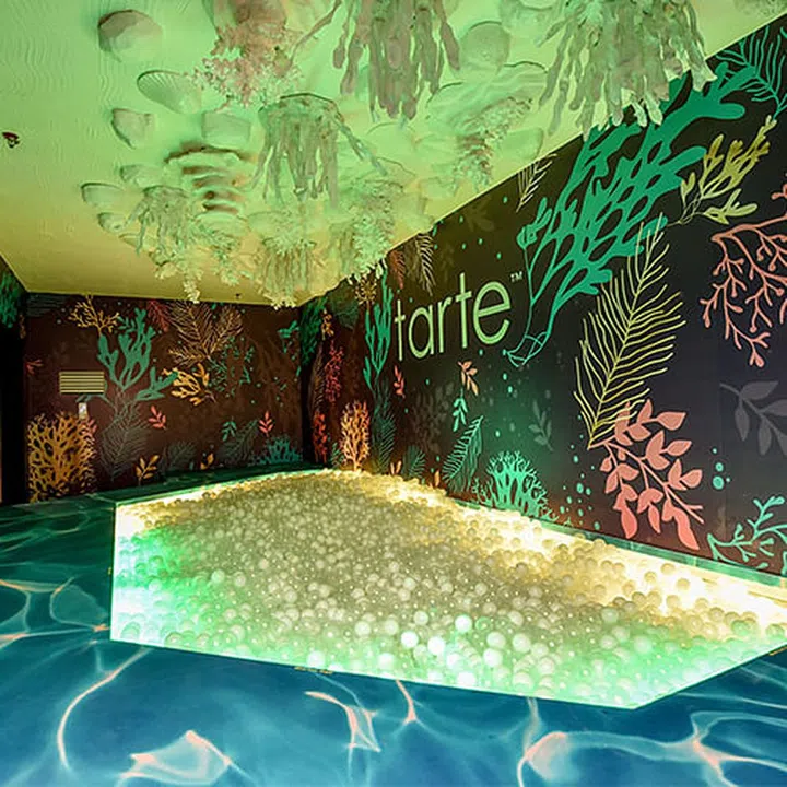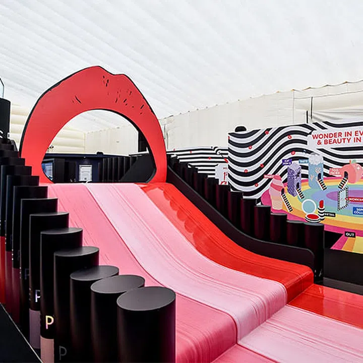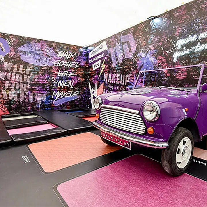 Pack light and take a ride through Urban Decay's room, inspired by the new Born to Run palette. Or you could bounce around on the colour squares, which are actually trampolines in disguise.