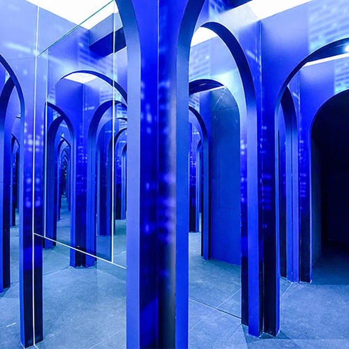 Don't get lost on your way out! Navigate the blue light mirror maze and find your shine.