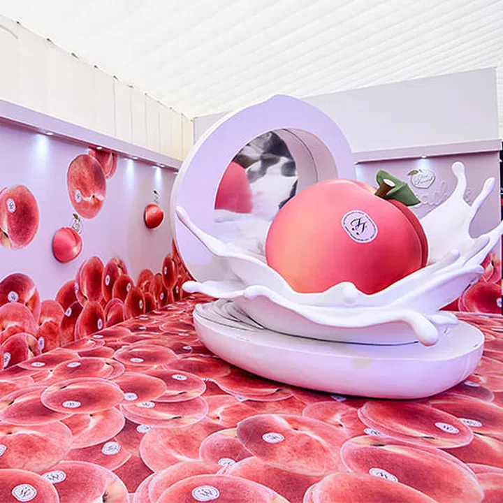 Snap your picture-perfect #OOTD at the Too Faced Peaches & Cream room. Push the peach to see what might just happen.