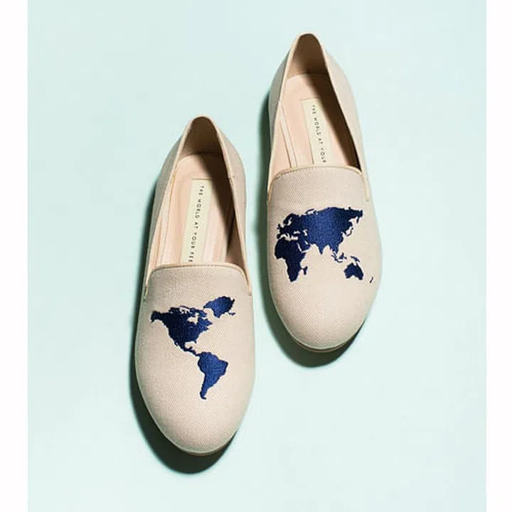 With a range of effortless, fuss-free designs, vegan brand The World At Your Feet features travel-themed loafers and sandals.