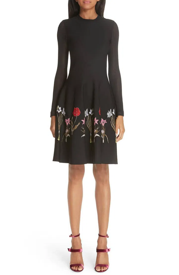 Oscar de la Renta Sheer Sleeve Floral Hem Dress, SGD $3548.12, from Nordstrom.