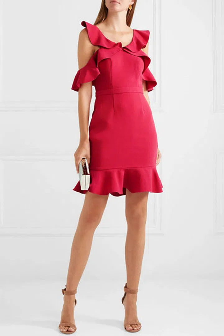 Rachel Zoe Delia cold-shoulder ruffled crepe mini dress, USD $391.95, Net-a-Porter.