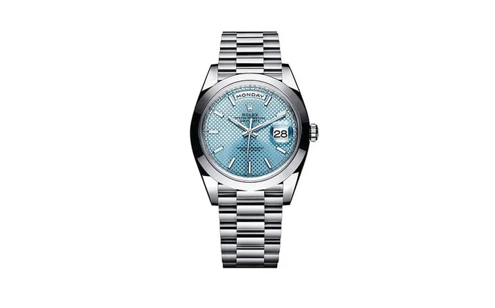 It may not have as long a history as the Oyster or Jubilee bracelets, but Rolex’s President band, introduced in 1956, is the brand’s most luxurious – and is used only for its highest-end Day-Date models. It combines the Oyster’s three-link design with the Jubilee’s semi-circular links, and is only ever crafted in gold or platinum and paired with the Rolex Crownclasp for a smooth, comfortable fit.