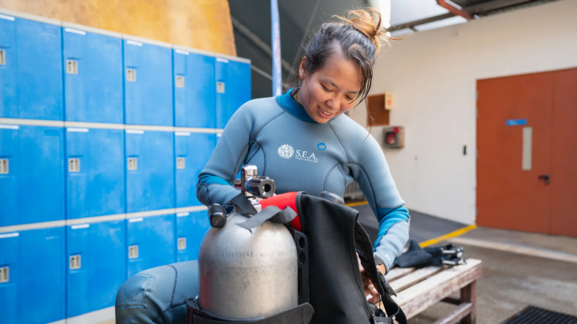 When I demonstrate my skills and expertise consistently, however, people start to let go of their preconceived notions about being a female aquarist. I don’t blame people for having those notions though. Many tasks as an aquarist seem to require brute force (such as using a 30kg scrubber machine to clean the habitat and coiling thick underwater hoses that can go up to 30m long.)