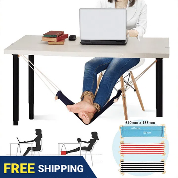 Everyone knows that a foot rest makes sitting down THAT much more comfortable. This portable foot hammock gives you just that, with a fun twist, so you can swing your legs around to shake off some of that stress.