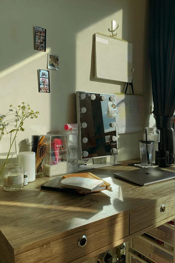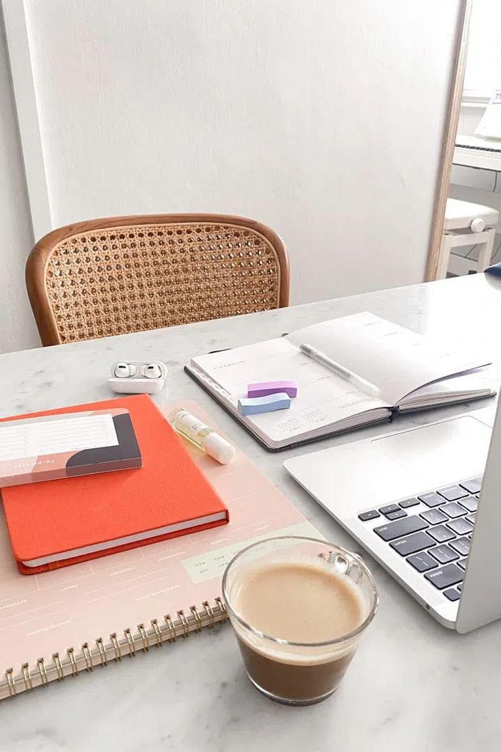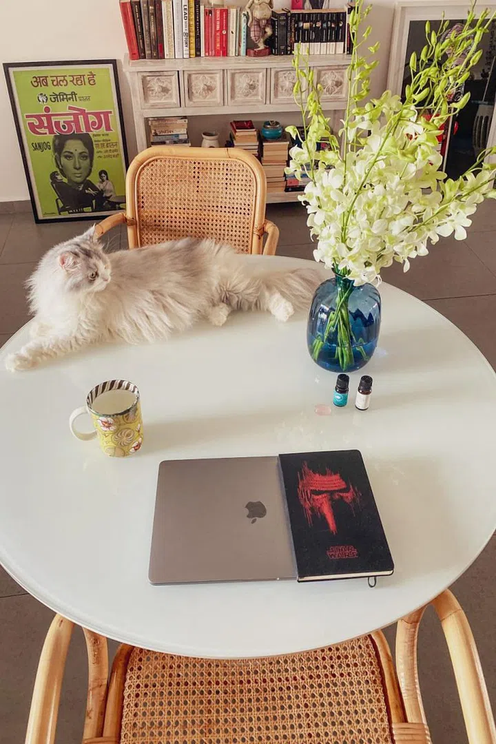 “I don’t have a study room at home, so I work from my dining table which is my work desk in the day. In addition to my laptop, I always need my desk planner and planner with me, a pen, a cup of coffee, a glass of water and I’m set to go for the day.”