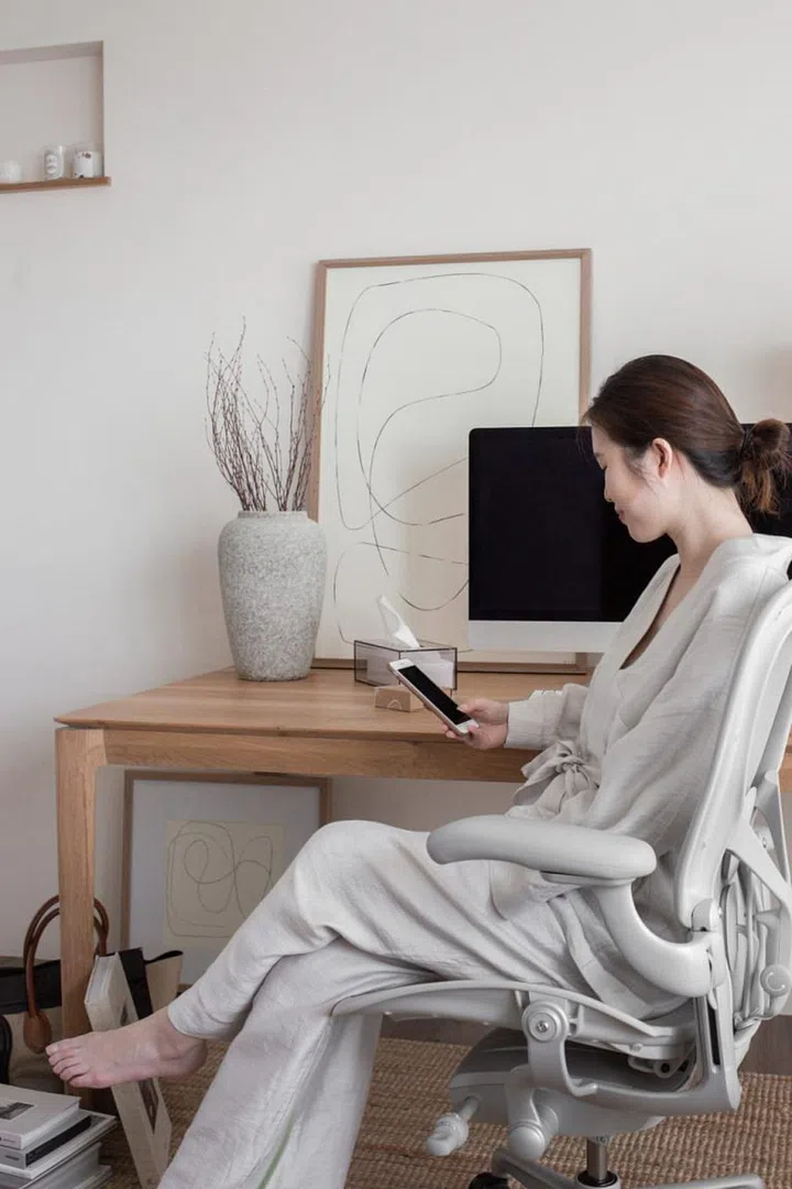 “We invested in our first Herman Miller chair just when CB started and got the second one, the Aeron, from Xtra when we realised WFH was going to be around for a while. It’s really life-changing for our posture and has given us so much comfort since we sit for such long periods of time. The colour and aesthetic fits in with the home so well too, and they have the longest warranties since they’re so well made!”