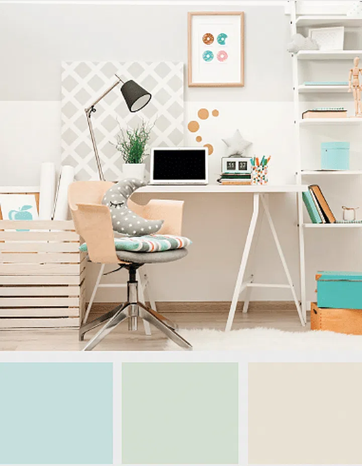 Colours set the tone and mood of a space. In a study, where calmness for a focused state of mind is needed, it’s recommended that you use tranquil, earthy tones such as pale green and eggshell blue. Stimulating colours, like red, are great for promoting creativity, but should be used sparingly and mindfully.