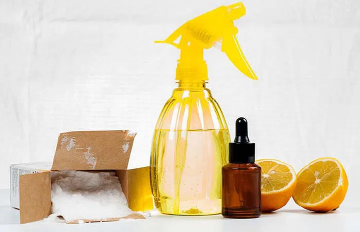 Use natural solutions for cleaning instead of chemical-laden ones that pollute the earth. Lemon juice, baking soda, and white vinegar are all gentle cleaners that are safe for the environment and pet-friendly, too.