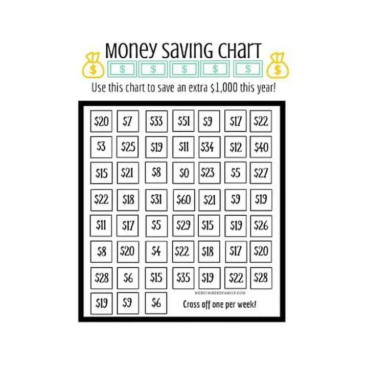 If you complete all 52 buttons, you’d have saved $1,000 in 1 year. Want to save more? Simply increase the individual amounts in the buttons.