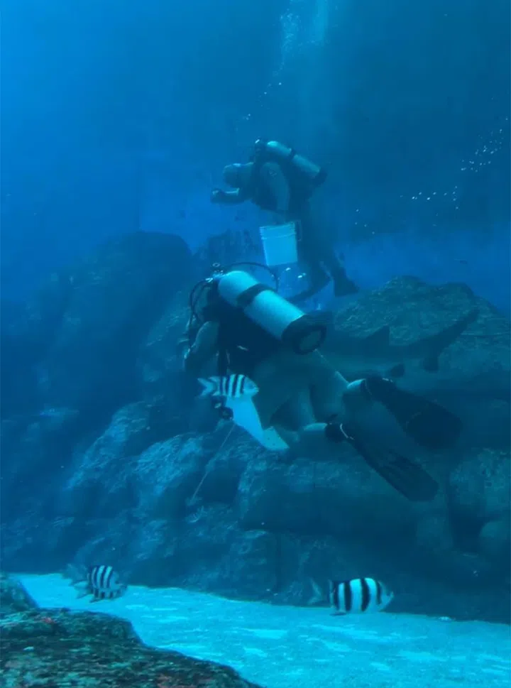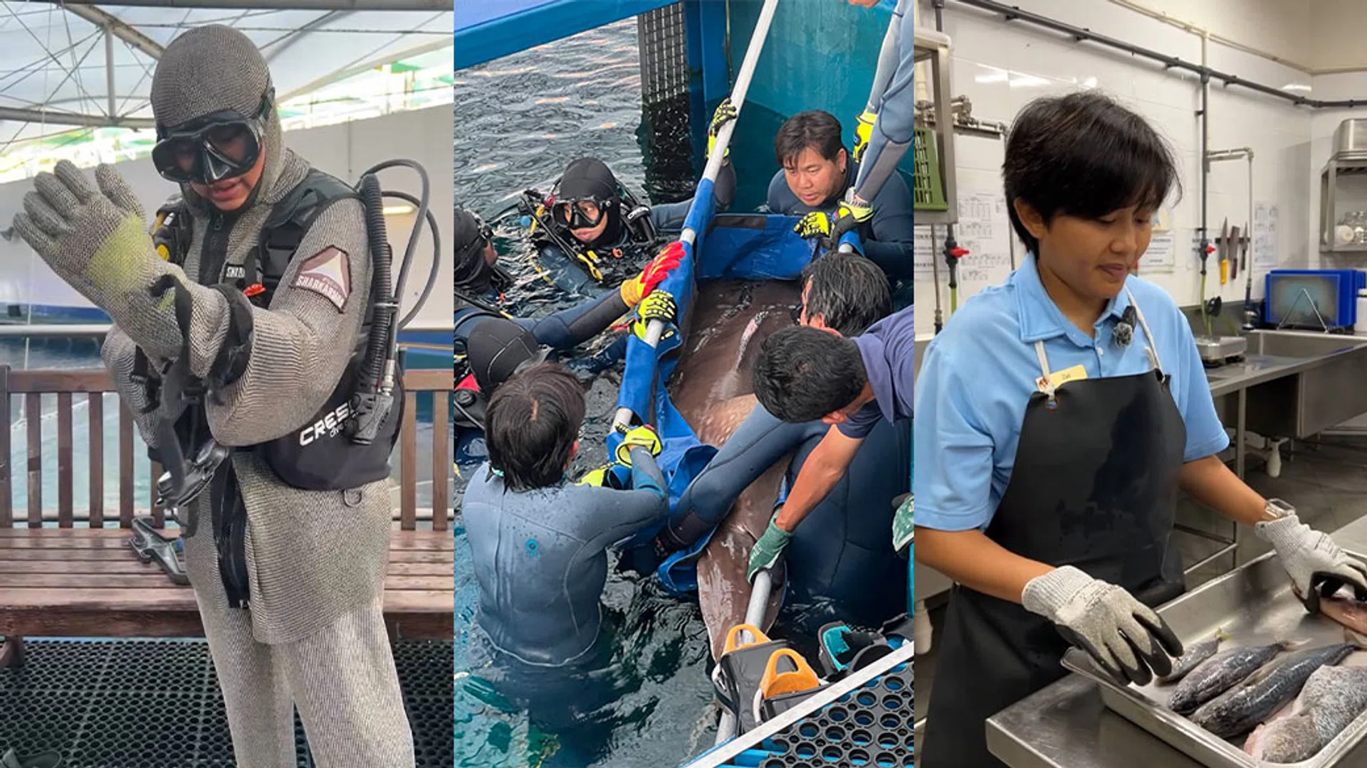 At S.E.A. Aquarium, collaboration is key. So I would normally work hand-in-hand with the vets and other aquarists to ensure the sharks’ well-being and closely monitor their health conditions, by sharing vital observations and making informed care decisions.