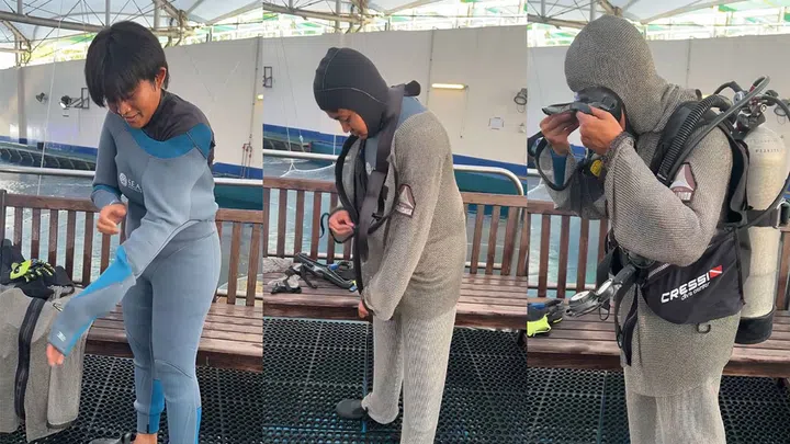 Now, as an aquarist who specialises in taking care of sharks, Izzati dives in daily to feed the sharks and ensures that the marine animals are well taken care of under her supervision. During our interview, she stressed the importance of shark conservation and how many have the misconception that these marine animals aren’t protected enough. They are often deemed as predators, and their numbers are dwindling because of human activities like overfishing and habitat loss. Of course, with someone who works in such a niche field, there are also many things that you might not know about being an aquarist. There are so many emotional and psychological aspects when it comes to working with sharks, and it requires lots of experience, care and patience when you’re handling them, especially on a daily basis.