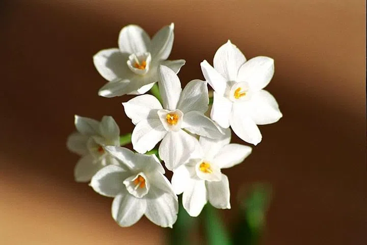 Grown from bulbs, Paperwhites need nothing more than water – and perhaps some pebbles to anchor them in the vase – to grow into clusters of beautiful blooms. Take care to keep the water level just below the base of the bulbs, but no higher, to prevent rotting.