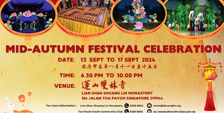 More info: eventbrite.sg/e/toa-payoh-east-mid-autumn-festival-at-shuang-lin-monastery-tickets-1004621458827