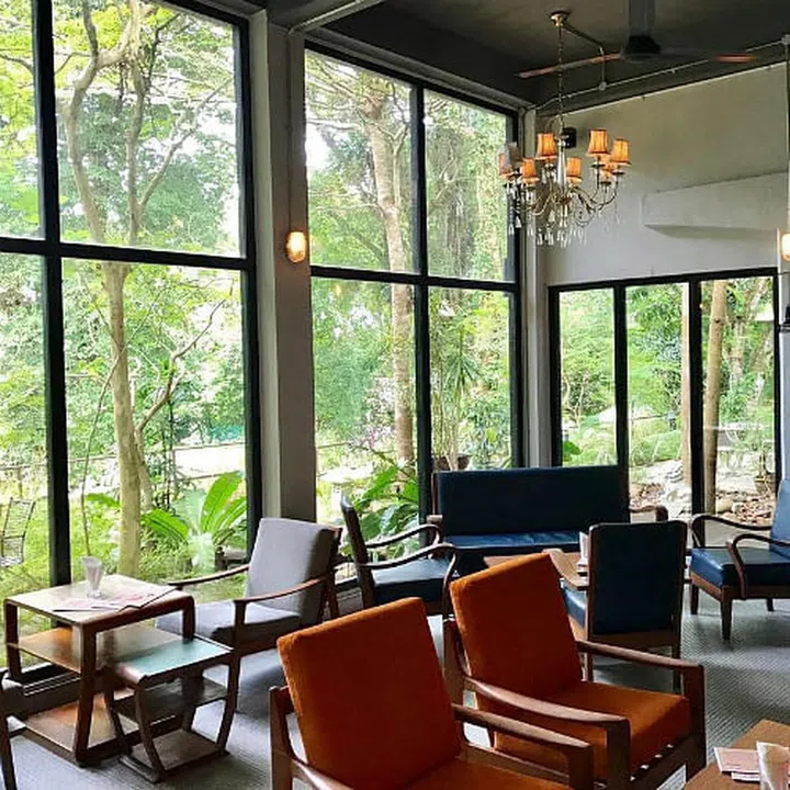 We like the inside-most part of the cafe a lot – where you'll find lots of big armchairs and floor-to-ceiling glass panels that show you the tropical greenery outside.