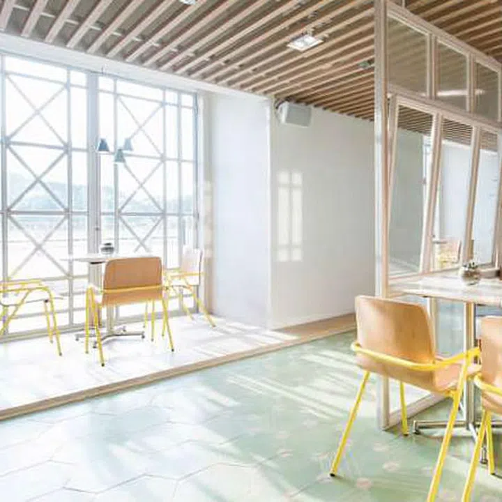 Walk past the studio where art students will give you serious painting inspo, before entering the cafe to find a cloudy glass floor that shows glimpses of the fountain the building is perched on.