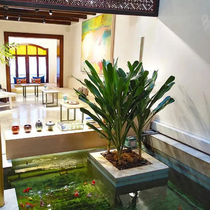 Instead of a home or regular shop, you'll find a koi pond, cushioned seating areas to sip tea at, and an overall zen atmosphere.