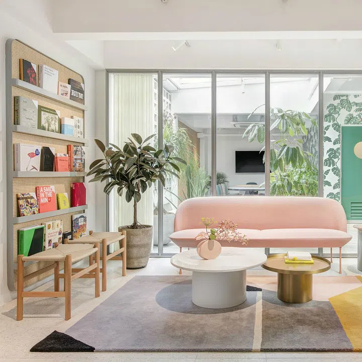 Painted in likeable tones of millennial pink and stone beige, with the occasional cacti and fern to add splashes of pine green, we feel we're in an Insta picture when we're here.
