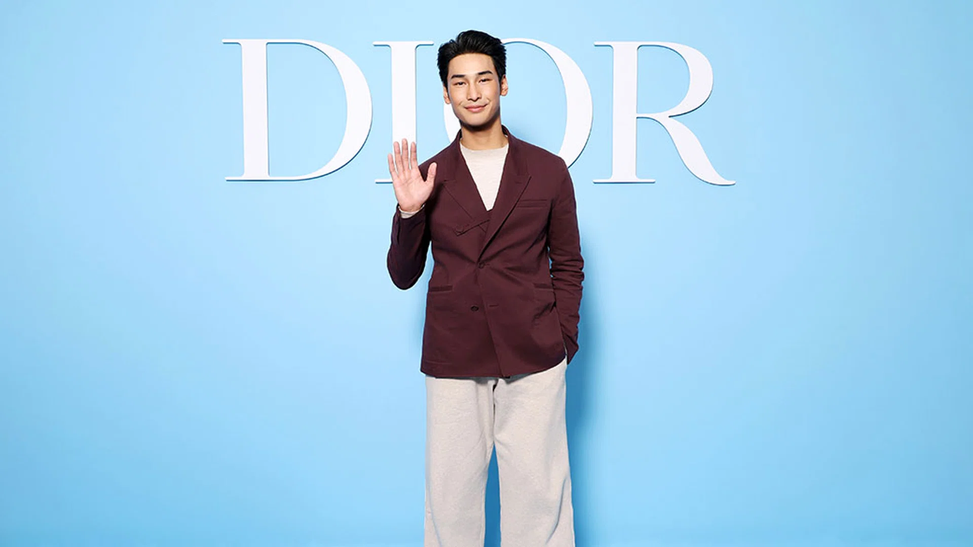 En route to the show in Paris, the Thai heartthrob wowed with his airport fit, consisting of a lambskin jacket and pants, Dior Gravity Leather B27 Sneakers and a roomy Dior Maxicannage Camera Bag.