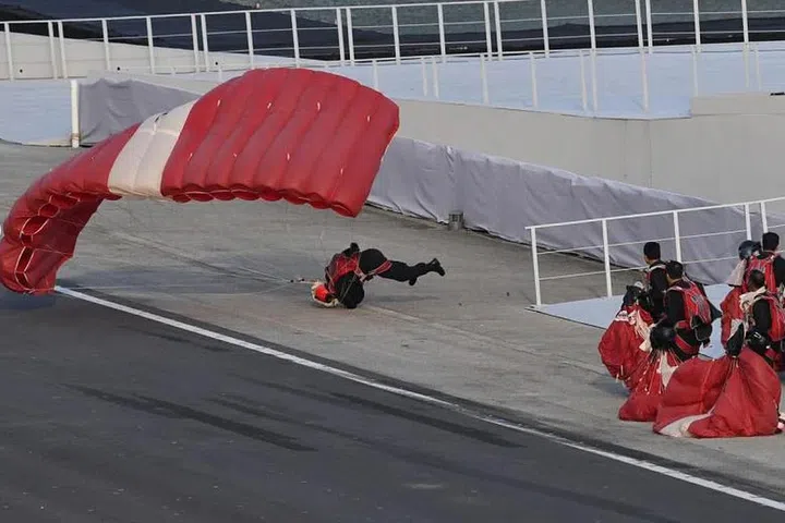 The parade also saw a scare when Third Warrant Officer Jeffrey Heng, a Red Lions parachutist, took a hard landing and was stretchered off. Defence Minister Ng Eng Hen later confirmed Heng was stable and receiving medical care.